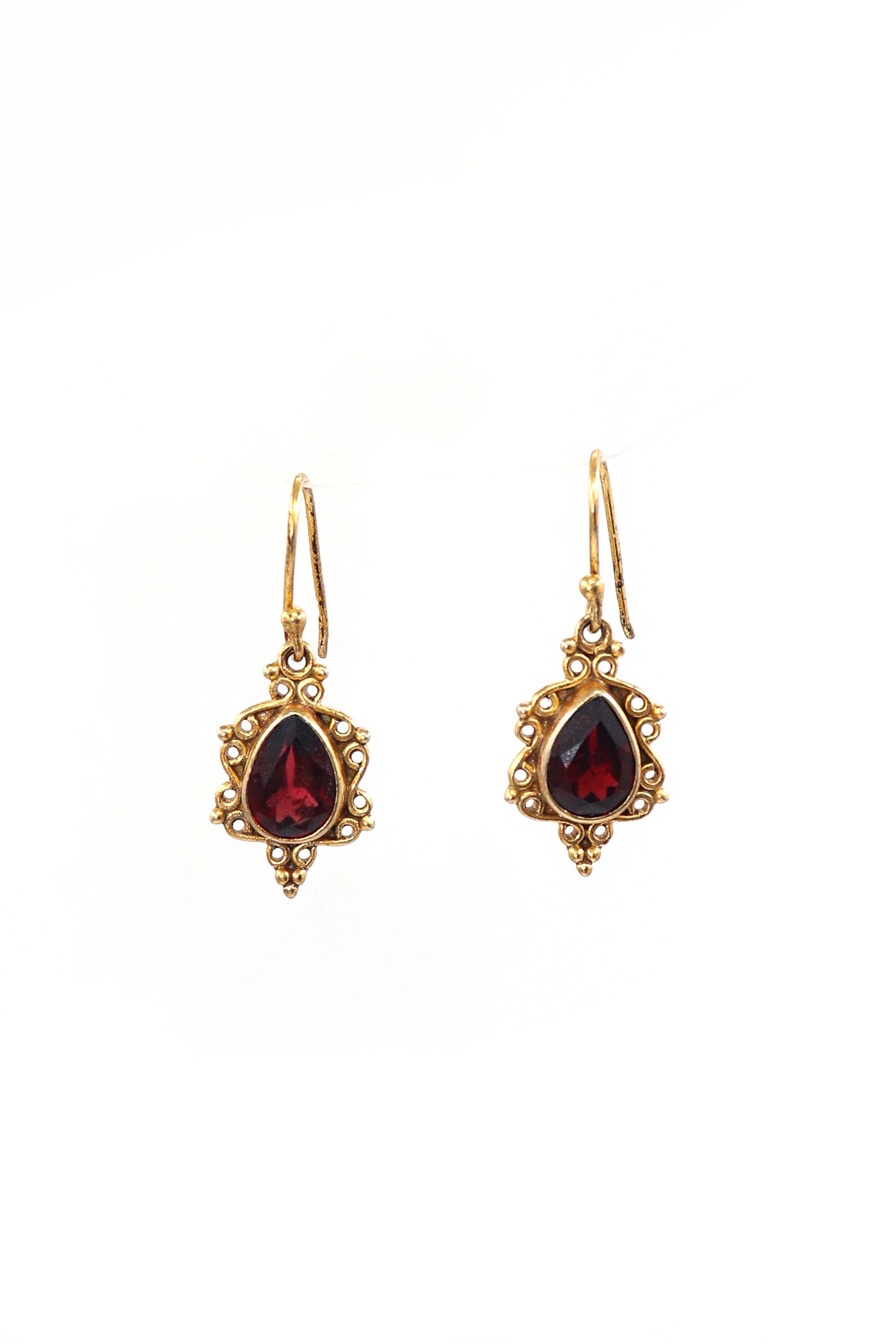 | Details | Designed in Jaipur, these garnet earrings showcase rich red tones in a minimal silver setting, perfect for elegant styling. |