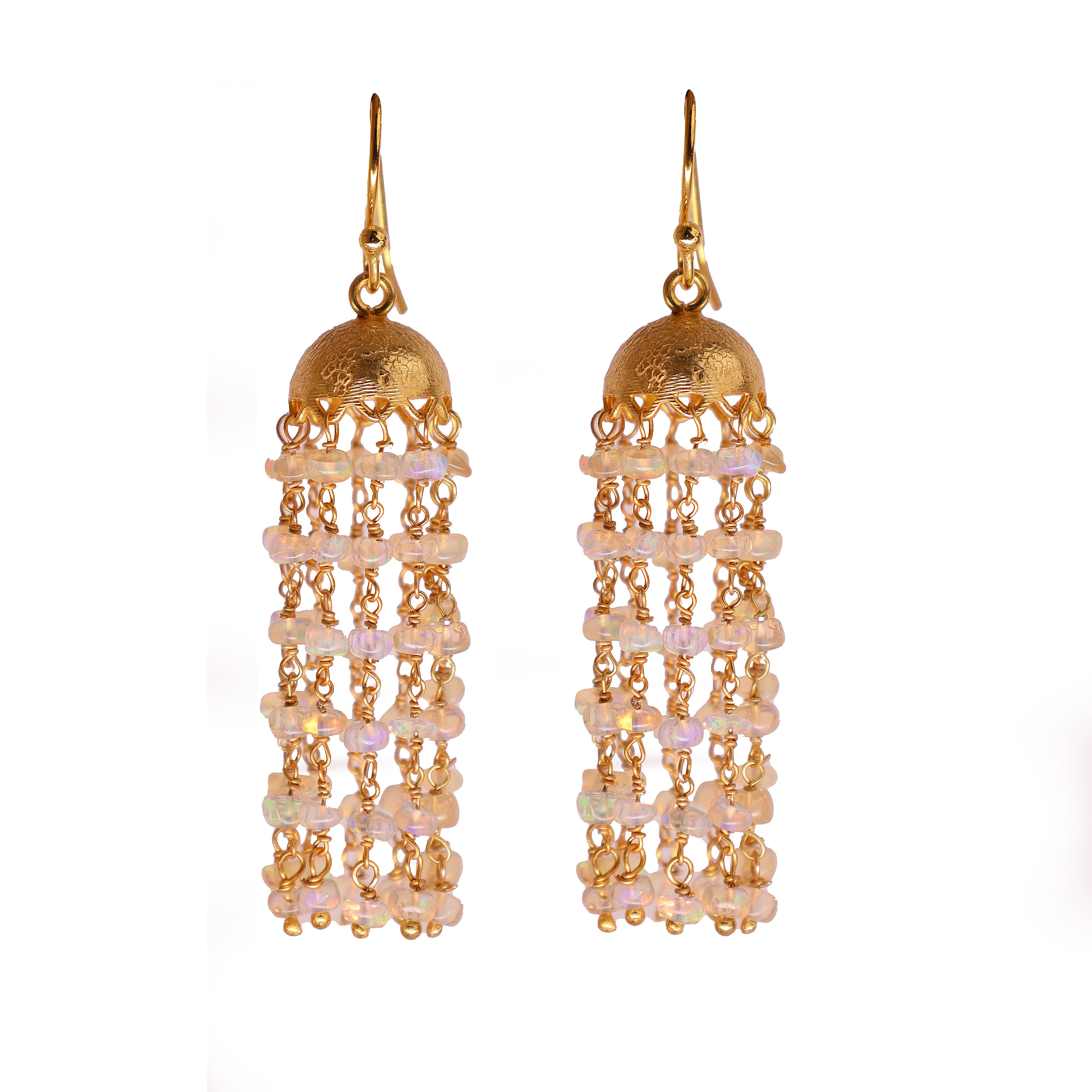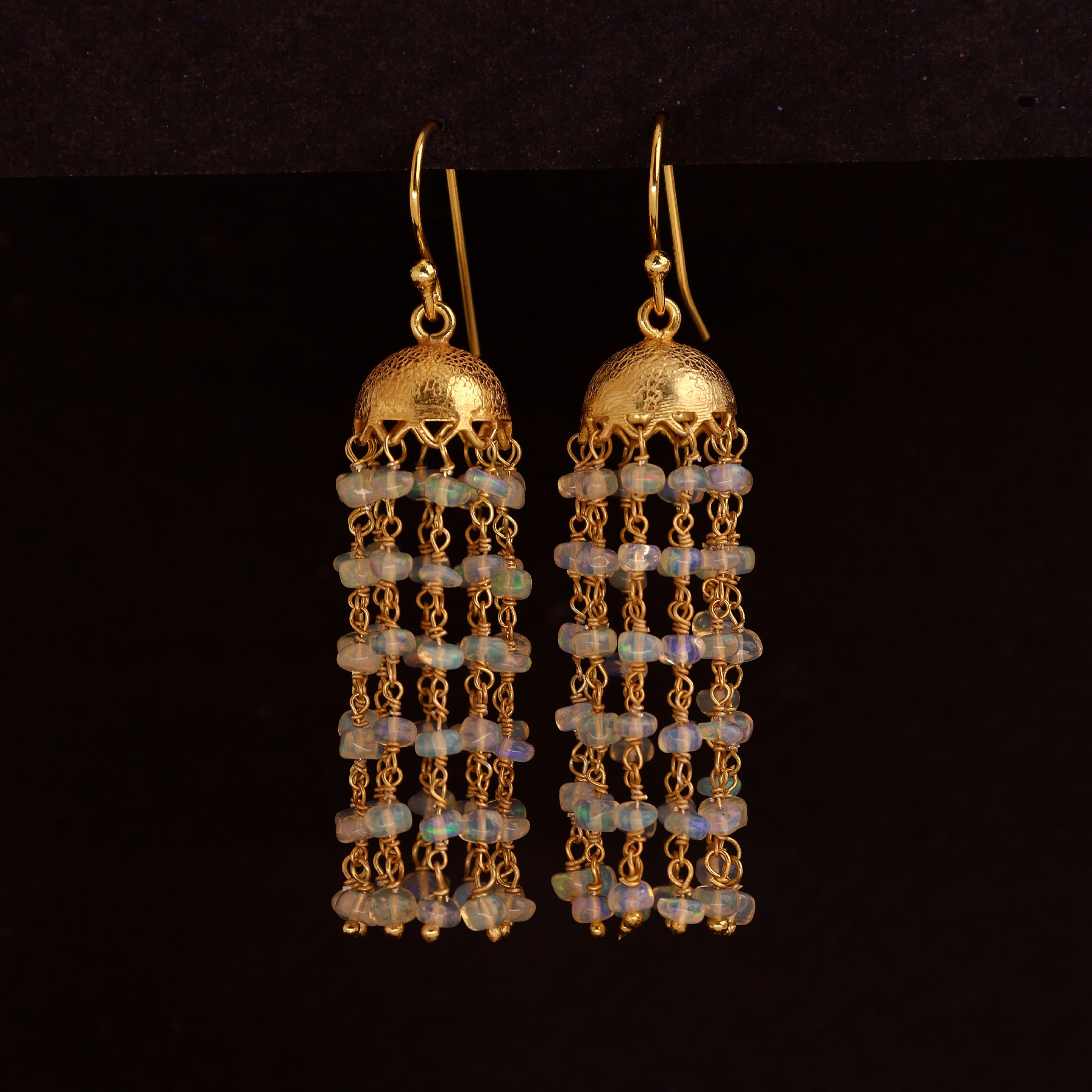 | Details | This gold-plated long earring is crafted in pure silver and set with opal gemstones, adding a luxurious touch to your festive ensemble. |