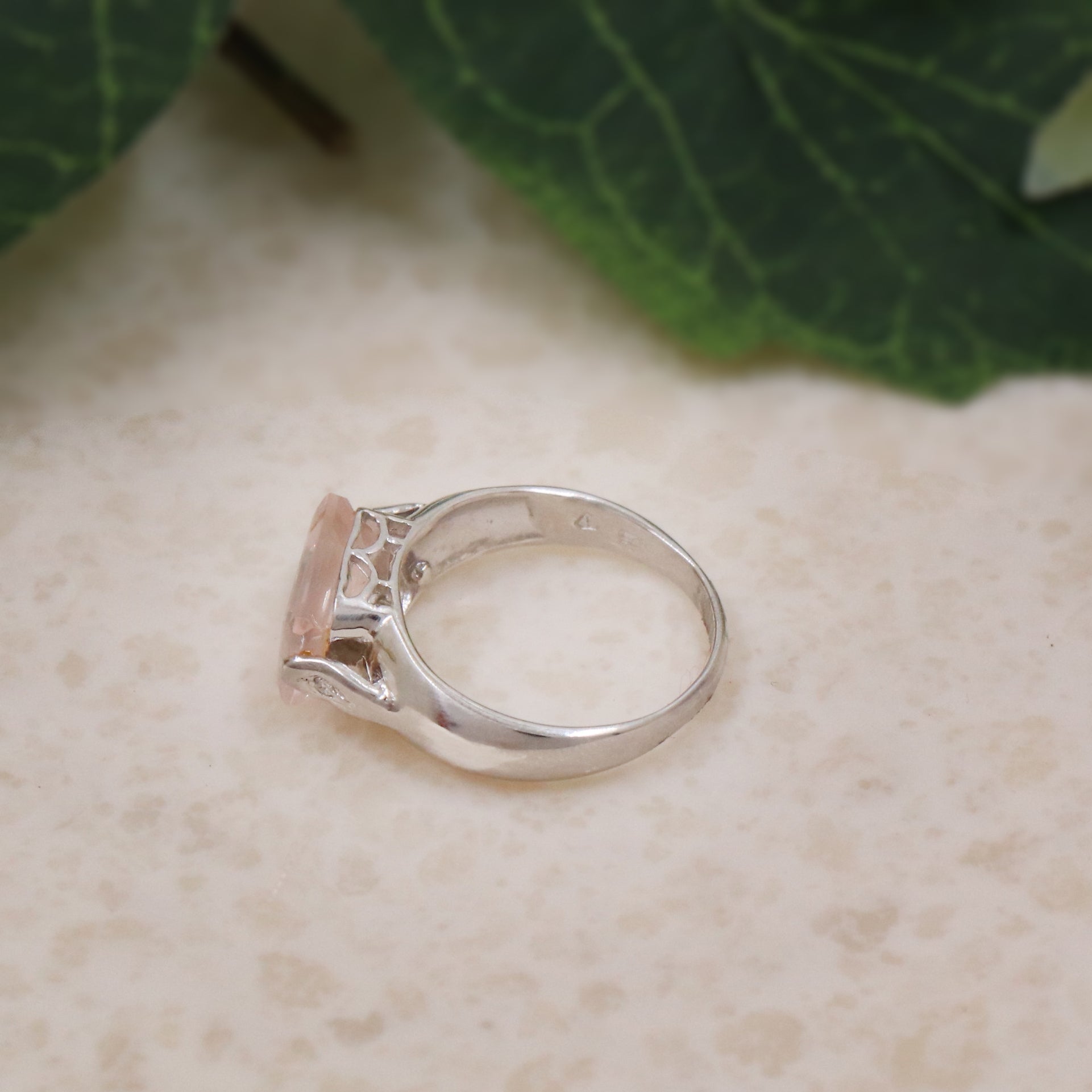 | Details | Simple, sweet, and elegant. This dainty ring features a polished Rose Quartz set in a delicate 925 sterling silver band, ideal for stacking or wearing alone. |